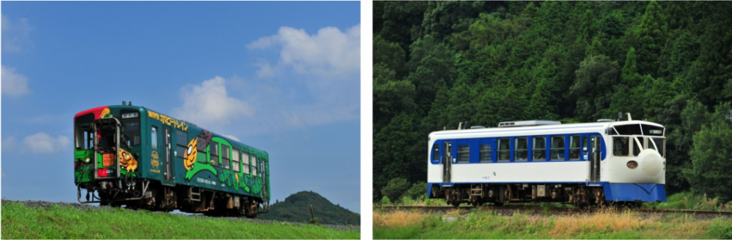 The Yodo Line runs along the Shimanto River, connecting Kubokawa to Uwajima City in the adjacent prefecture of Ehime. This line features not one but three unique trains, affectionately known as the Yodo Line Three Brothers. Two of the three trains are normal trains made in unique designs; one pays homage to the mythical “kappa” that supposedly live in bodies of water and the other to the original model of the Shinkansen bullet train. The third is a truly unique experience, a train with an open-sided trolley car to enjoy the natural beauty along your ride.