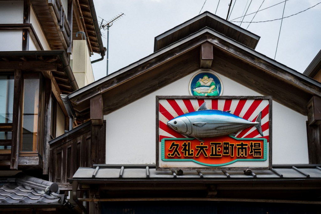 One way you can do that is by reserving a seat on the elegant Shikoku Tosa Toki no Yoake no Monogatari train, which translates roughly to “Tales from the Dawn of an Era in Tosa, Shikoku,” with Tosa being the old name of Kochi Prefecture. Fittingly, this sightseeing train begins its journey near Kochi Castle, one of the last 12 original castles remaining in Japan. From there, it takes a leisurely paced ride to Kubokawa, with a brief stop at Tosa-Kure Station, where the Taisho-Machi Fish Market is located. If you are unable to make a reservation in this direction, the train also travels the route in reverse later in the day, from Kubokawa to Kochi.