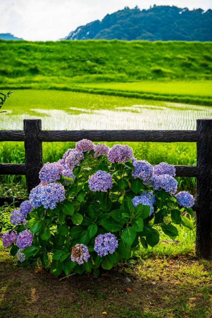 Historically, waterwheels of this type were constructed along artificial canals like this one to pump water into rice paddies, but over time, such structures were no longer needed and disappeared from the landscape. The Yasunami Waterwheels are maintained here by the local community, mainly for tourism and as a representation of the technology once used in farming. Nonetheless, they create a stunning view of life from another era, especially in late Spring when the hydrangea planted along the waterway burst into colorful hues of pink, purple, and blue.