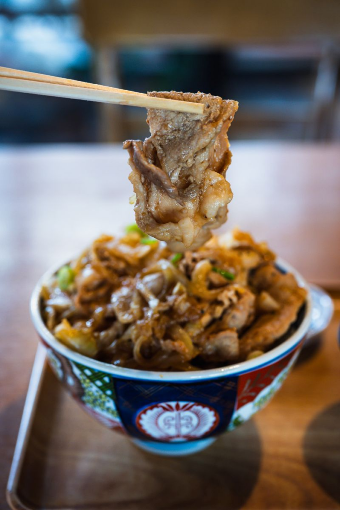 Current owner Norihisa Makino serves a mountain of a meal in his Roasted Garlic Pork Bowl with slightly sweet slices of braised pork piled high on a bowl of Niida rice. This huge meal is a godsend for hungry travelers on the nearby Ohenro Pilgrimage route (Temple #37, Iwamoto Temple, is just a few hundred meters away). The rest of us should skip breakfast before attempting to finish this enormous, delicious meal.