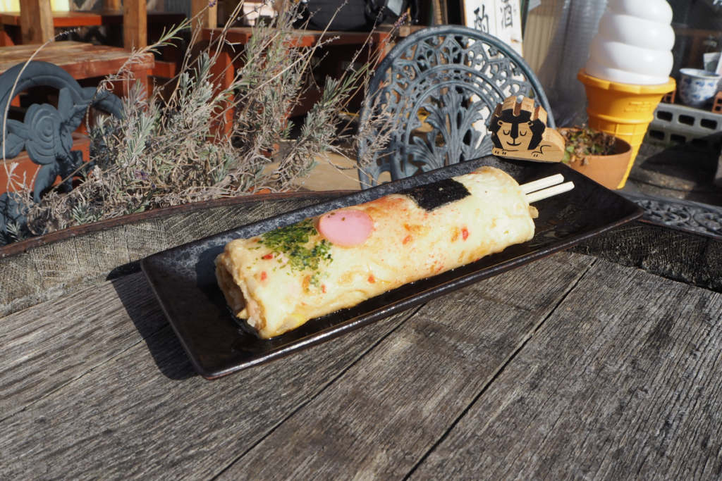 This locally conceived “junk food” ought to rival the heavy-hitting “takoyaki” from Osaka that everyone knows and loves. Similarly made from a flavored batter, this snack is grilled on an iron skillet, and rolled into what I could only call a “savory Japanese burrito”. Toppings like cheese, mayonnaise, spicy sauce, or just plain soy sauce give you many ways to enjoy this inexpensive bundle of carby goodness. It’s quite famous actually, and has been featured on national TV, with many of Japan’s TV personalities stopping by for their fill. And if you’re not busy, cheap drinks are served promptly from 5pm, spicing up the evening fun for locals and visitors.