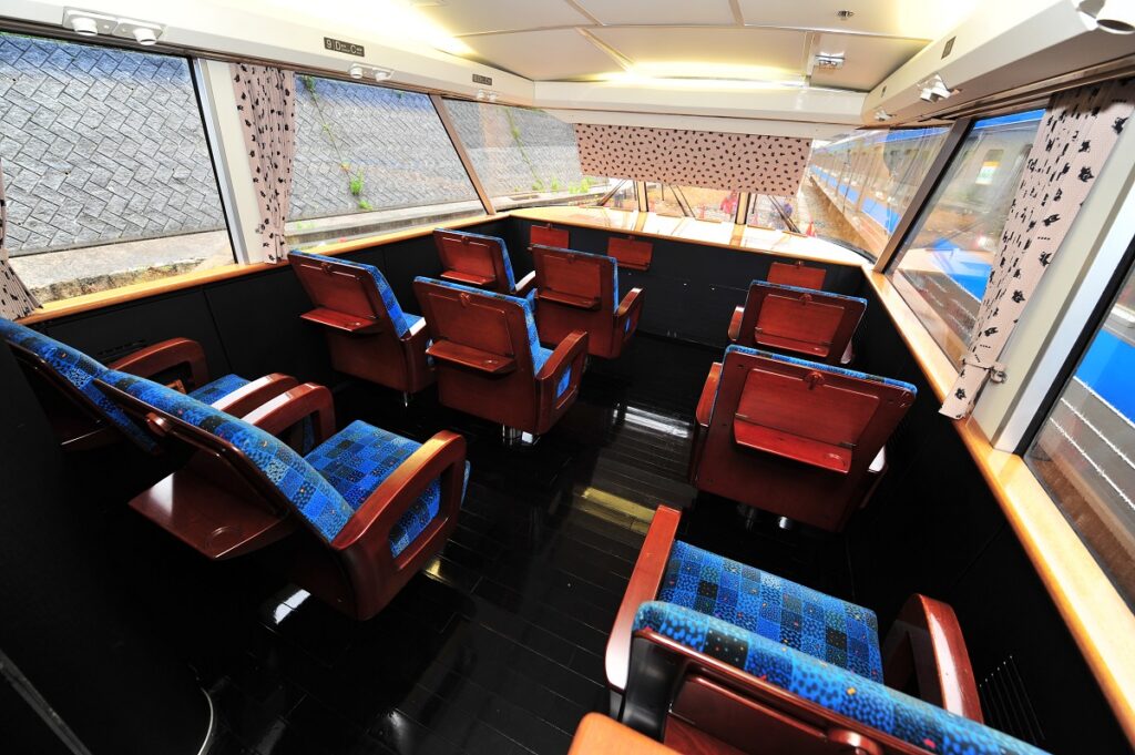 First, keep an eye out for Kuro, the dog mascot whose image is scattered both inside and outside the train. His adorable figure will make your journey on this train more enjoyable.