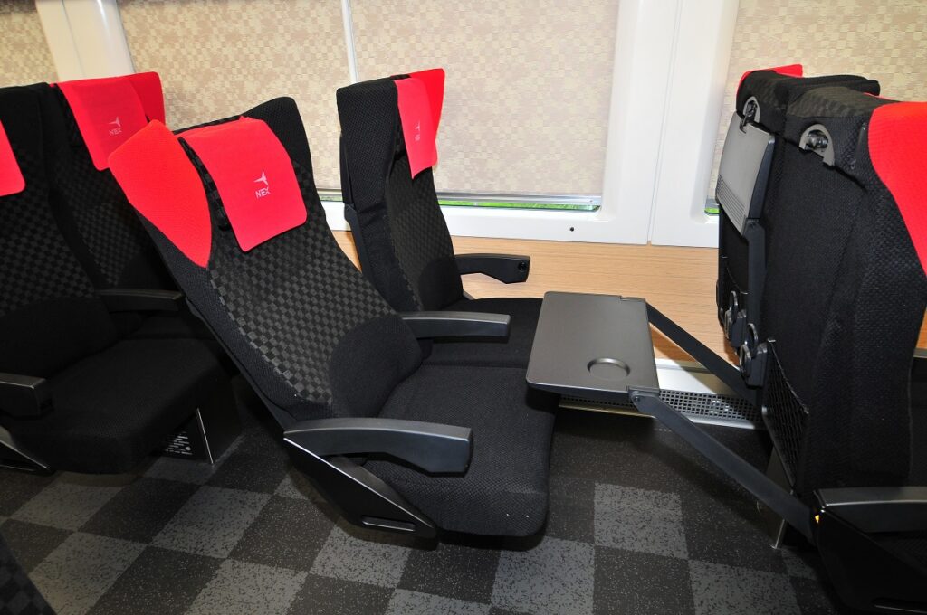 After arriving at Narita Airport, you will want to ride the Narita Express, also known as N’EX, into Tokyo. The train arrives at Tokyo Station in as quickly as 53 minutes. The train cars include an area for storing large luggage and spacious seats, meaning you can enjoy the ride comfortably even if you have a lot of luggage. There are also convenient features like a tray table and outlet at each seat.
