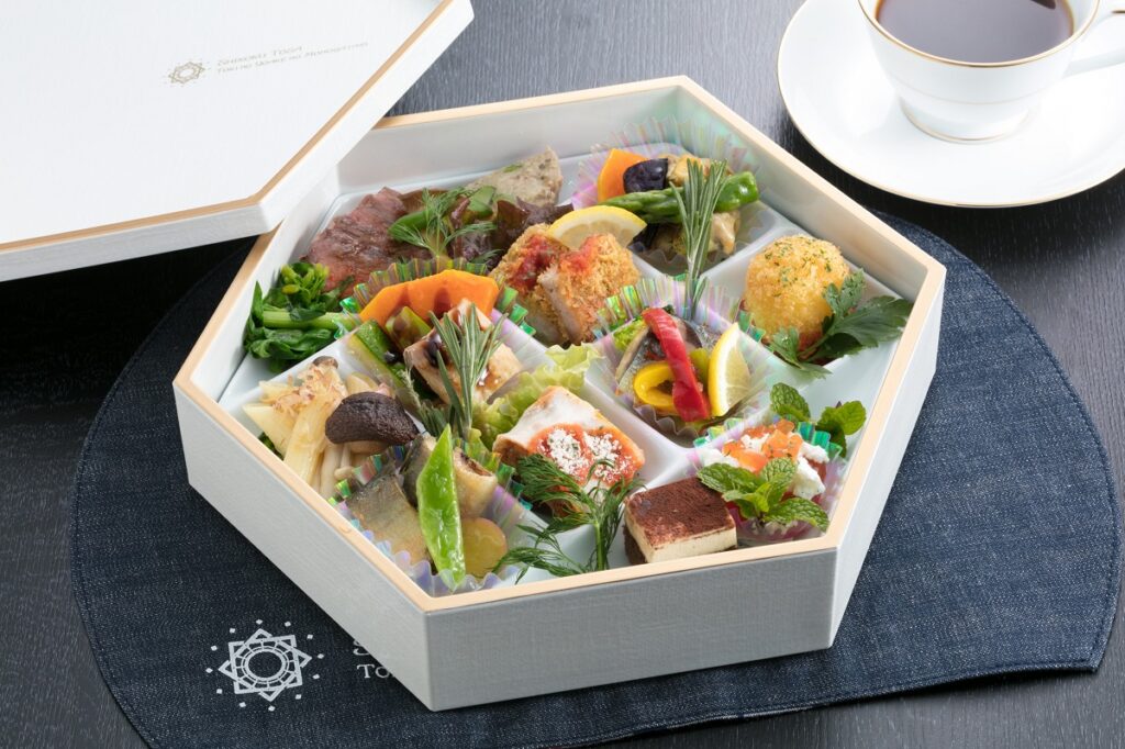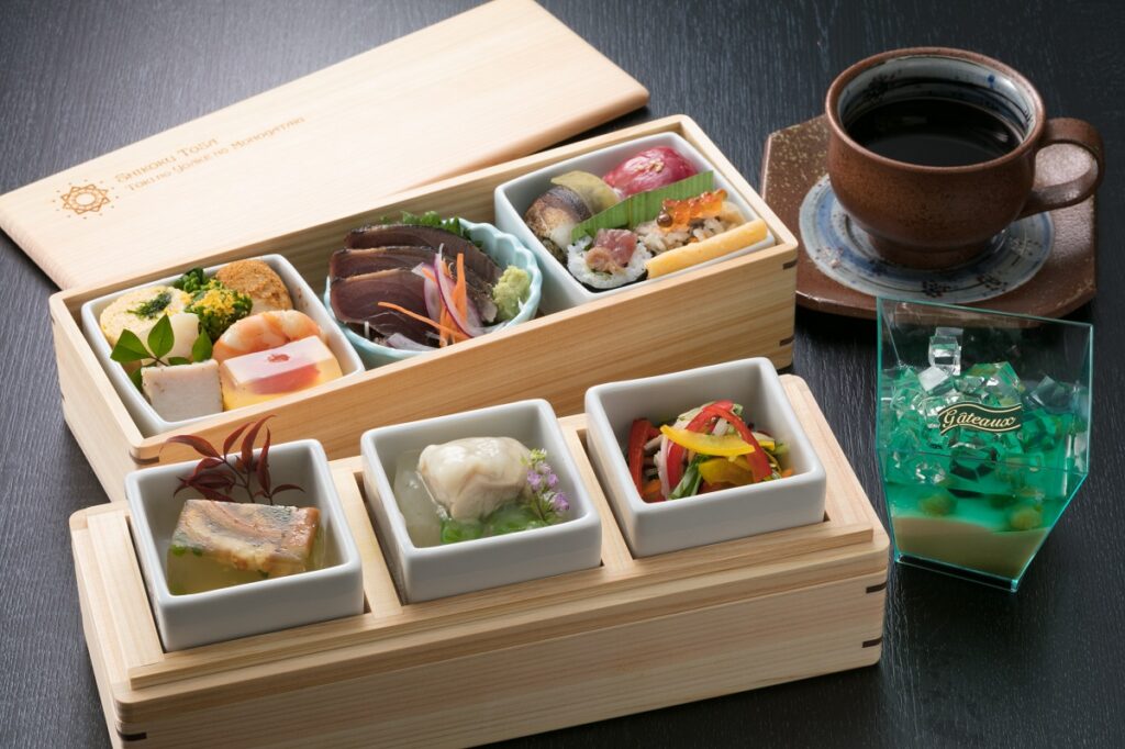 On the north-bound train, you can enjoy a course meal where each dish uses well-known ingredients from the areas of the major stations on the route. The containers are also made from a material well-known to the area; hinoki.