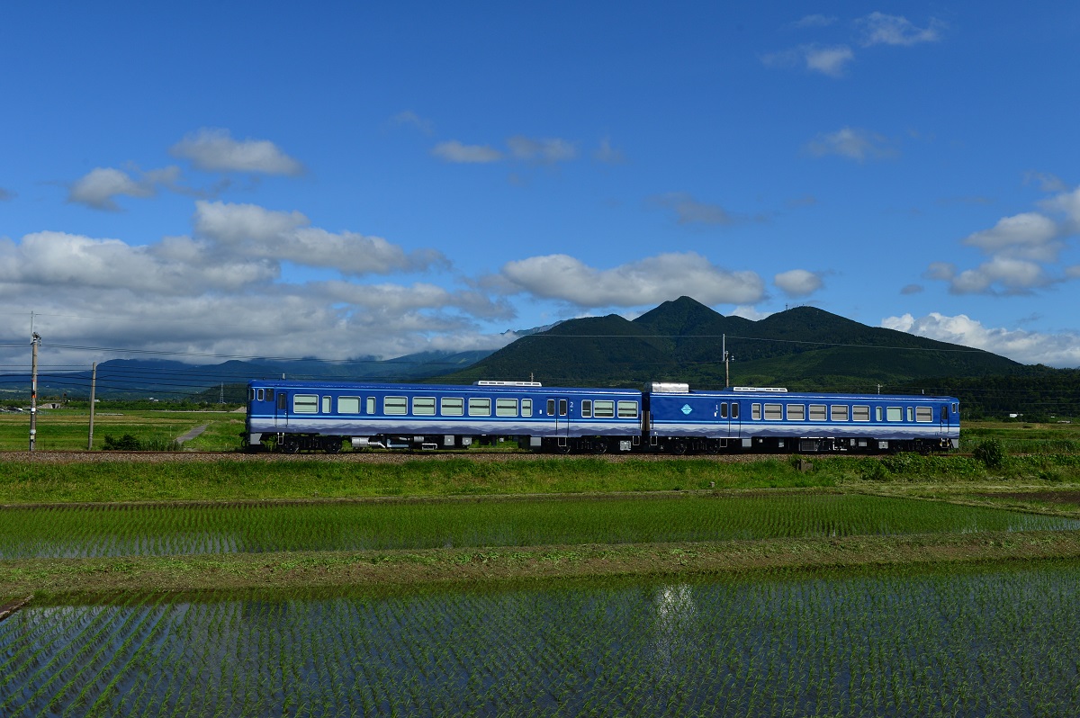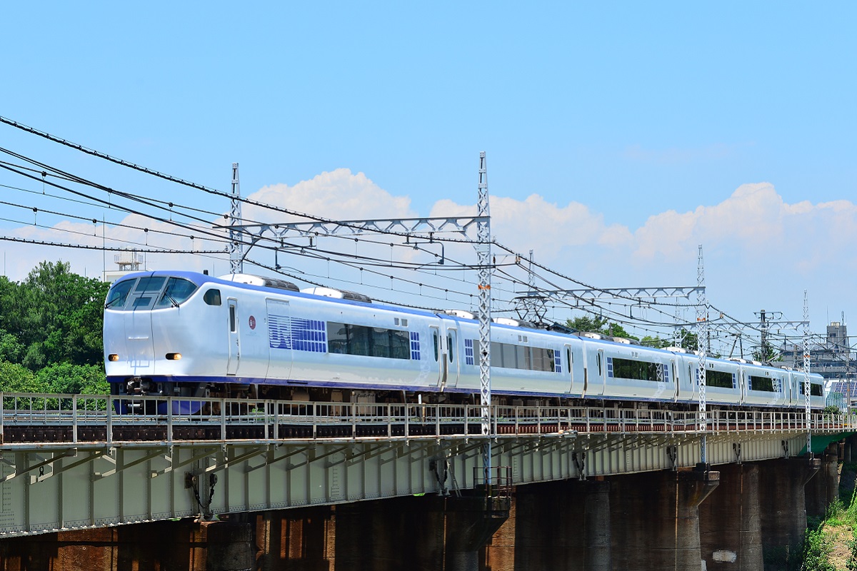 The cars are colored in lapis navy blue which symbolizes the rich color of the sea and sky famous in western Japan. The long lines running down the side of the cars give the sense of long-distance travel and evokes people’s desire to travel far away.