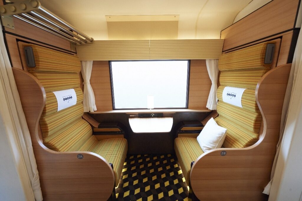 The six-car WEST EXPRESS GINGA offers a different type of seating in each car.